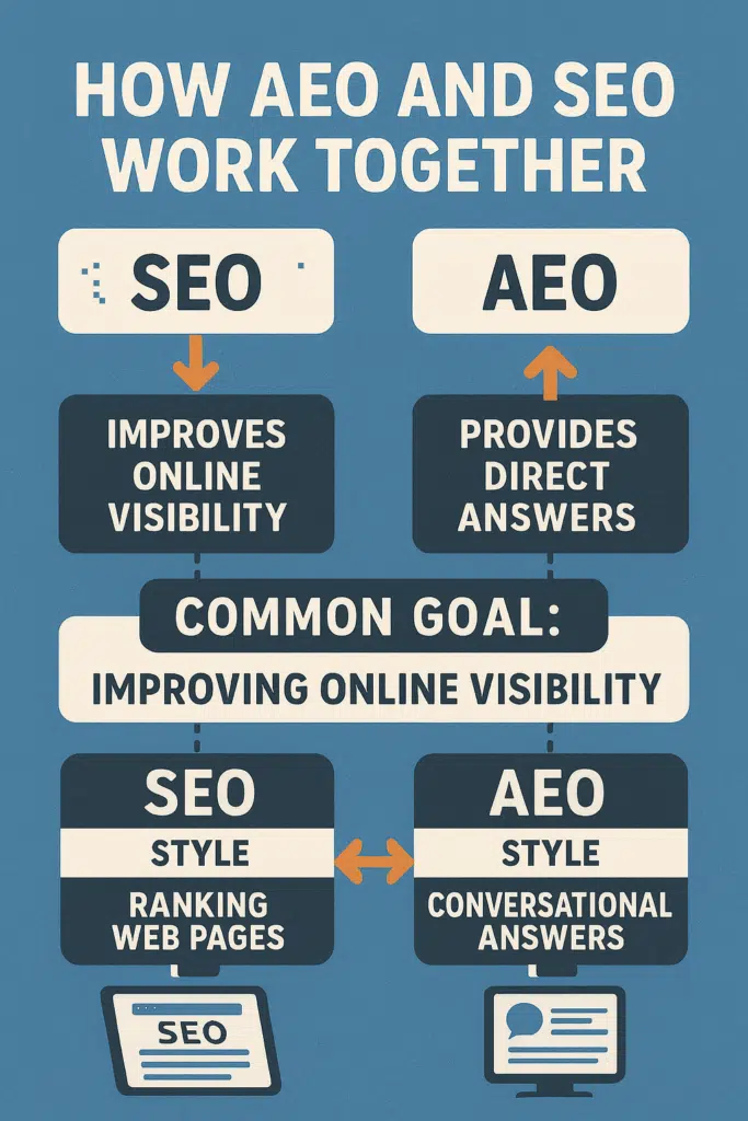 Use both together. SEO builds the foundation (rankings, backlinks, authority). AEO makes sure you’re visible in the new layer of search where answers appear before links do.