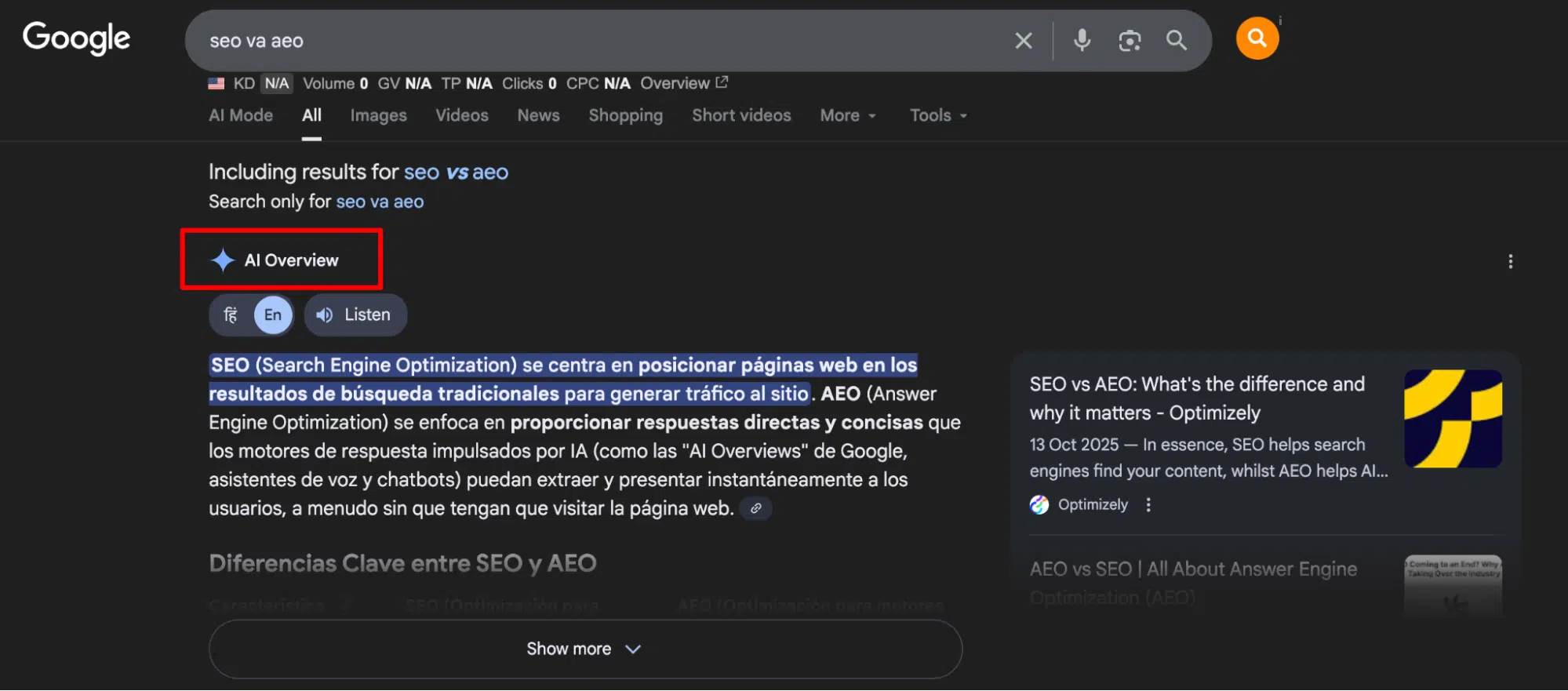 You can control clarity, freshness, structure, and sourcing. Add answer blocks at the top of your pages, use clean Article schema, cite reputable sources, and keep content updated. What you cannot control is whether Google decides to generate an Overview or which sources it chooses. - Does AEO replace SEO?