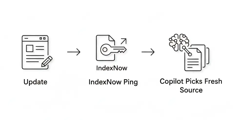 Winning AEO for Bing Copilot starts with speed. Copilot prizes content that’s freshly updated and verified, which is where IndexNow comes in.