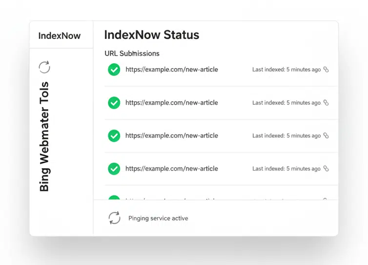 Log IndexNow submissions and success rate. Check crawl latency in Bing Webmaster Tools and note how fast updates get picked up after each ping.