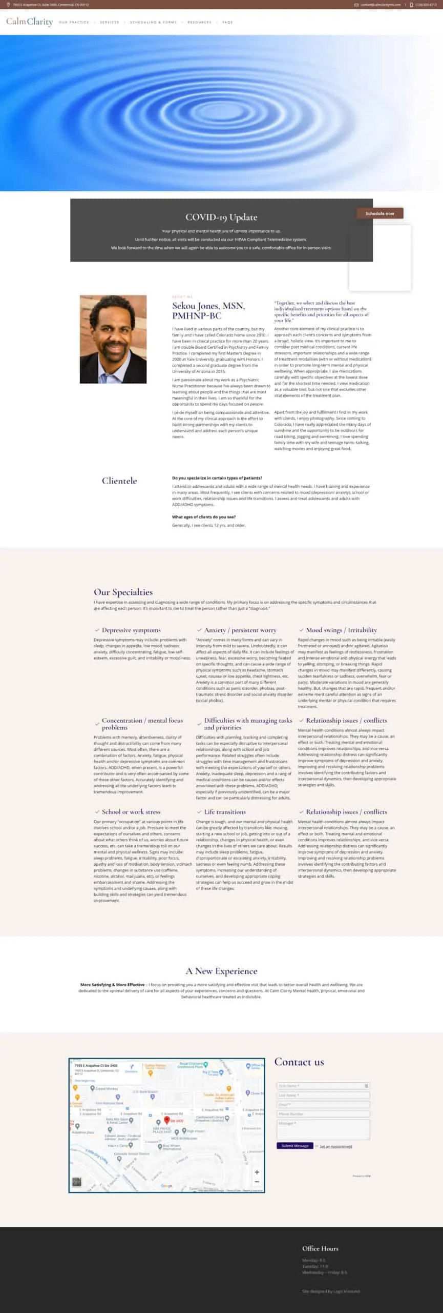 Sekou Jones, practice owner at Calm Clarity MH, wanted a redesigned website with modern aesthetics and easy-to-use functionality.