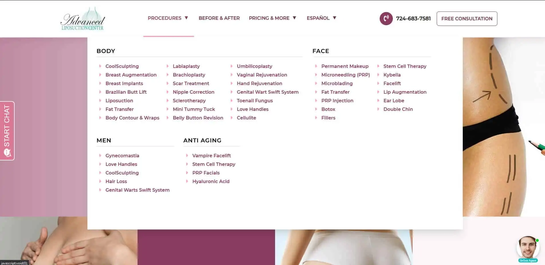 Advanced Liposuction Center’s website was ranking low on Google PageSpeed Insights. We found that their website did not have a good user experience as it would load slowly. So predictably, it was also scoring poorly in Google’s Page Speed index.