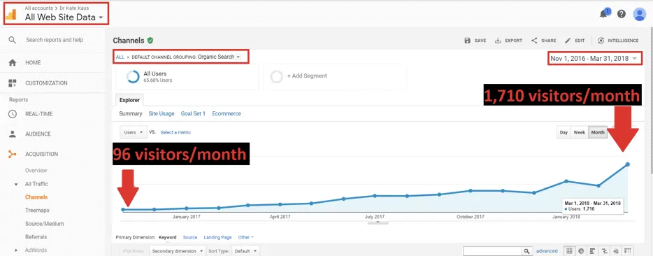 Our SEO experts at Logic Inbound increased Dr. Kate Kass’s patients by over 1,000% in 15 months through SEO on Google. We will walk you through the exact tactics and techniques that we used, so that you will be able to get more patients as well. If you ever need help, you can call us at (206) 800-7756.