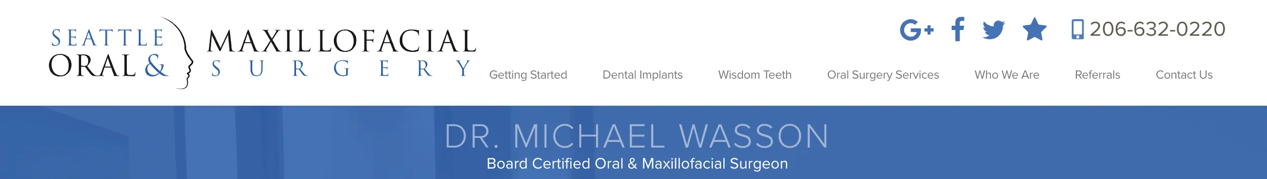 Seattle Oral & Maxillofacial Surgery ranks on the first page of Google for “oral surgeon seattle” and obviously took their site structure seriously as you can see from their amazing header and footer navigations. By this, I am referring to the options that you can click on at the top and bottom of the page.