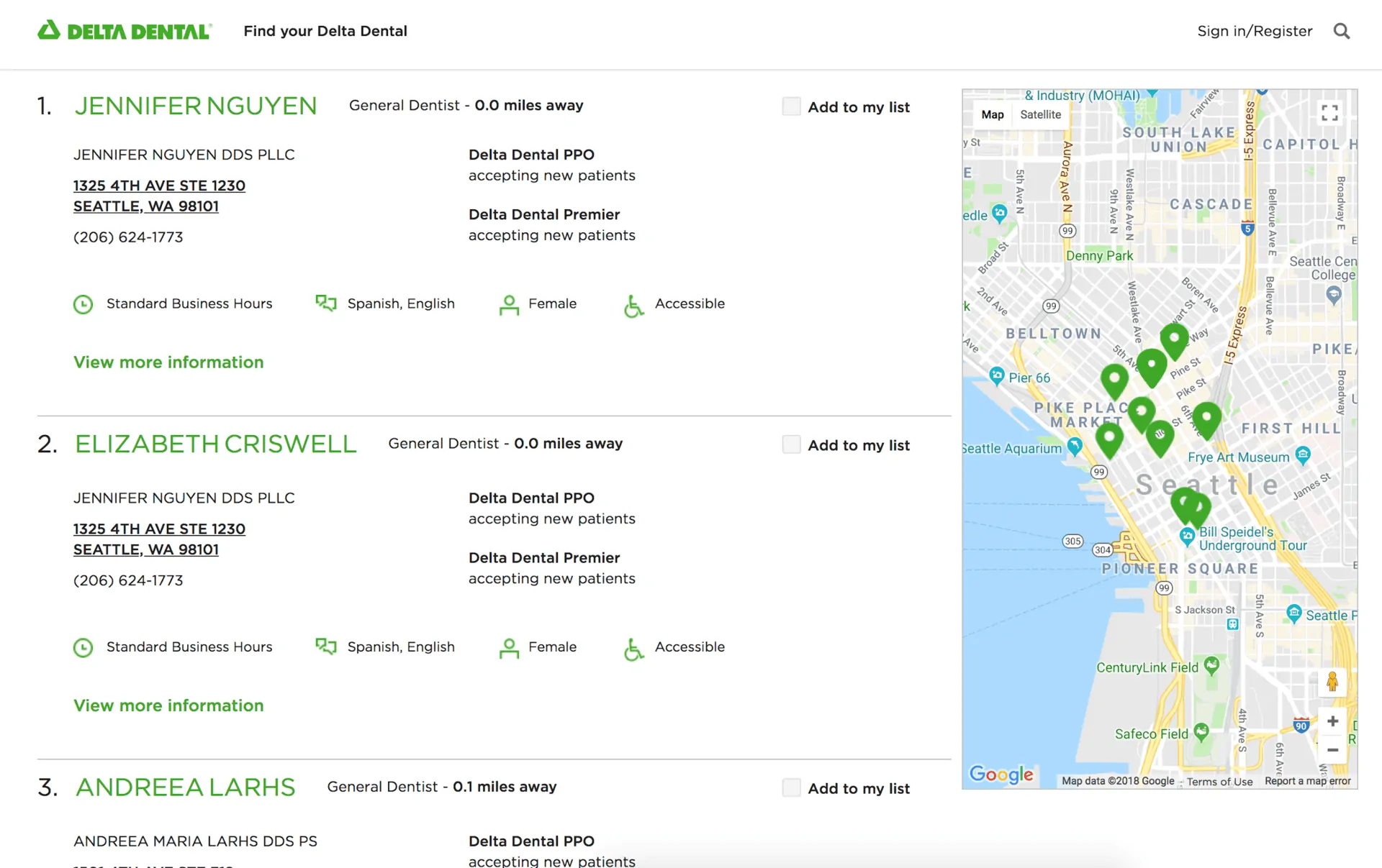 Google Search Engine Result Page for “dentist seattle” as a keyword: