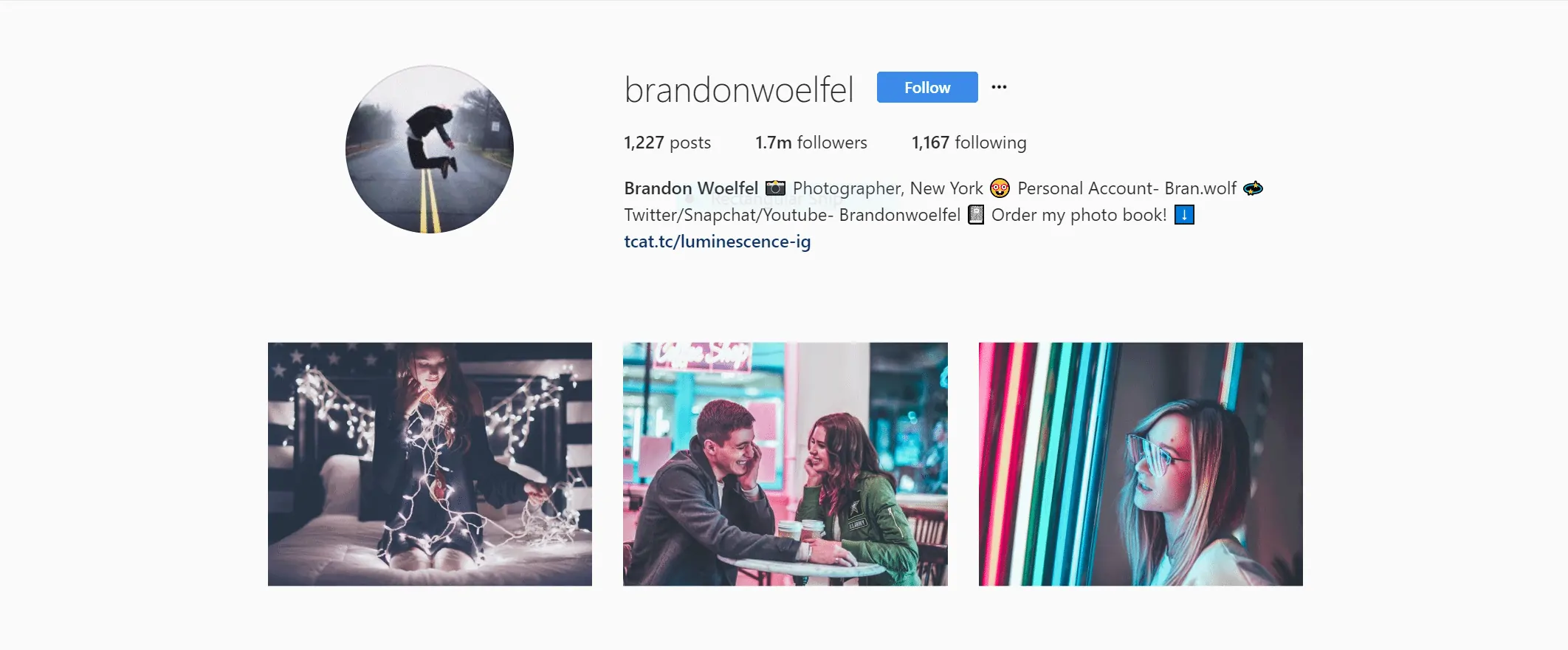 Famous celebrity photographer Brandon Woelfel isn’t verified, but has over 1.7 million followers: