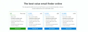 Hunter costs $50 for the Starter plan, so it’s more expensive. But for me the value for Hunter lies in its simplicity and no-frills approach to getting emails from websites and the very good email verification feature.