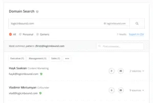 This is a feature that I use less often, since for outreach I’m only concerned with finding all the email addresses associated with a domain, rather than for specific personnel.