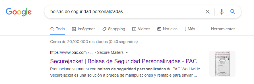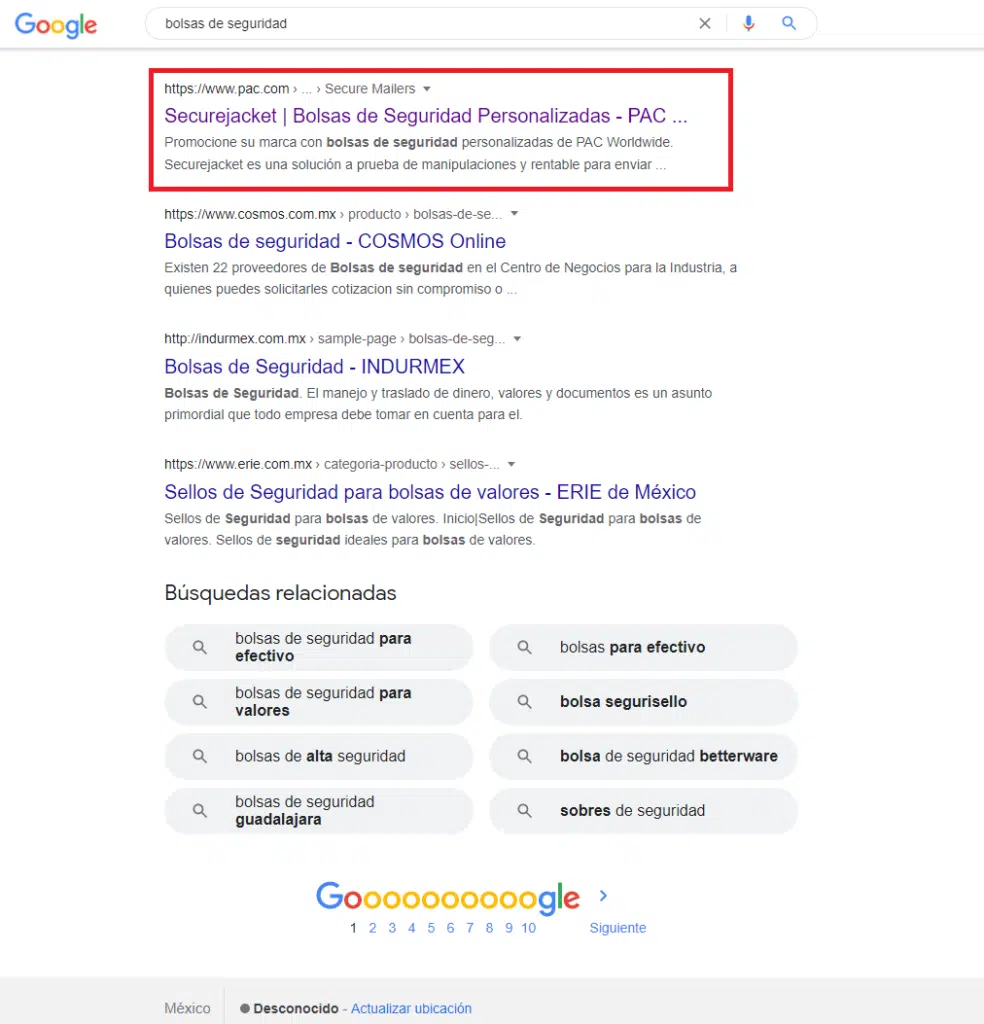 ‘bolsas de seguridad personalizadas’ – Rank one on page one