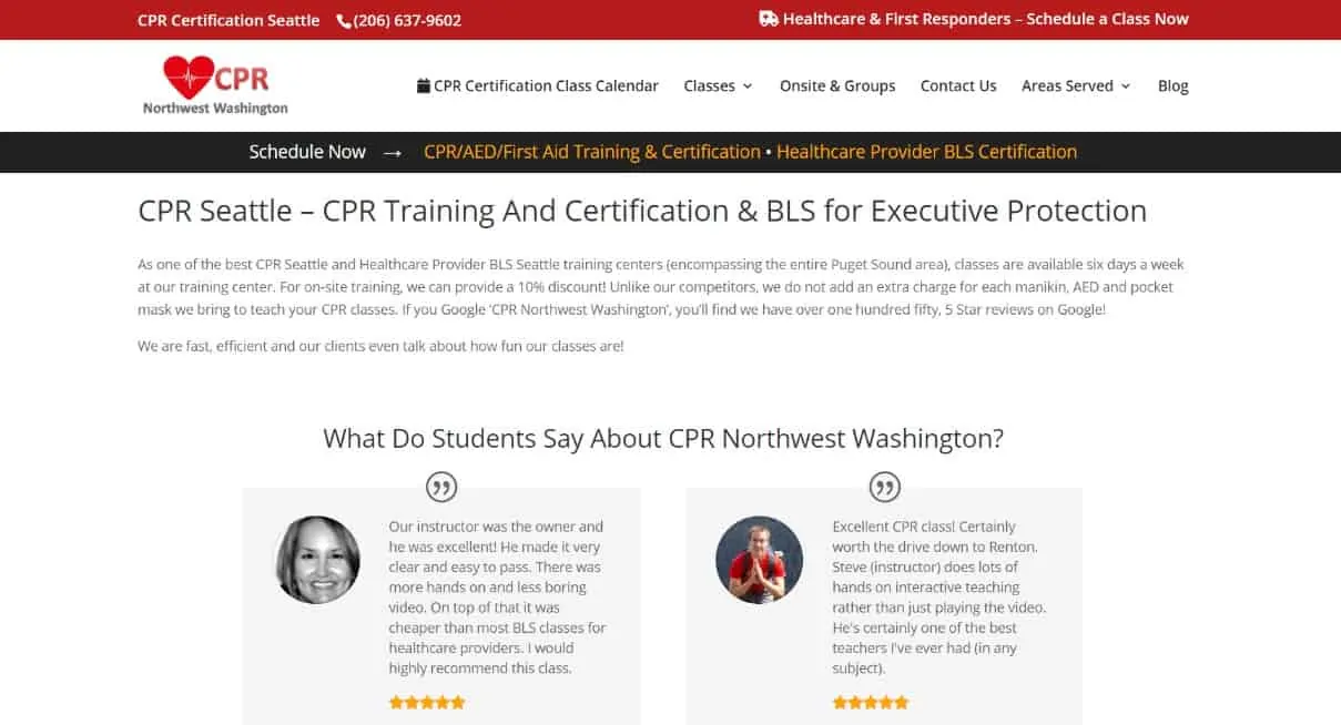 We helped CPR Northwest rank for highly competitive keywords on page 1 of Google SERPs.