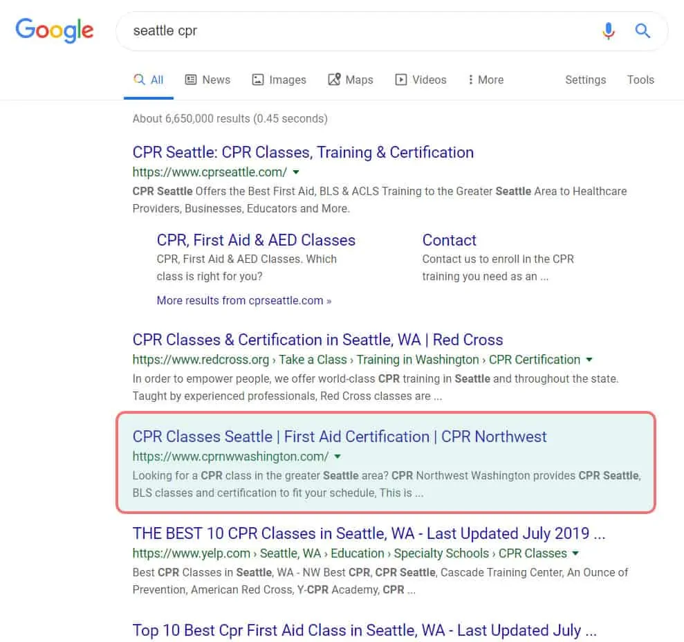 CPR Northwest ranks 3rd for ‘Seattle CPR‘ keyword