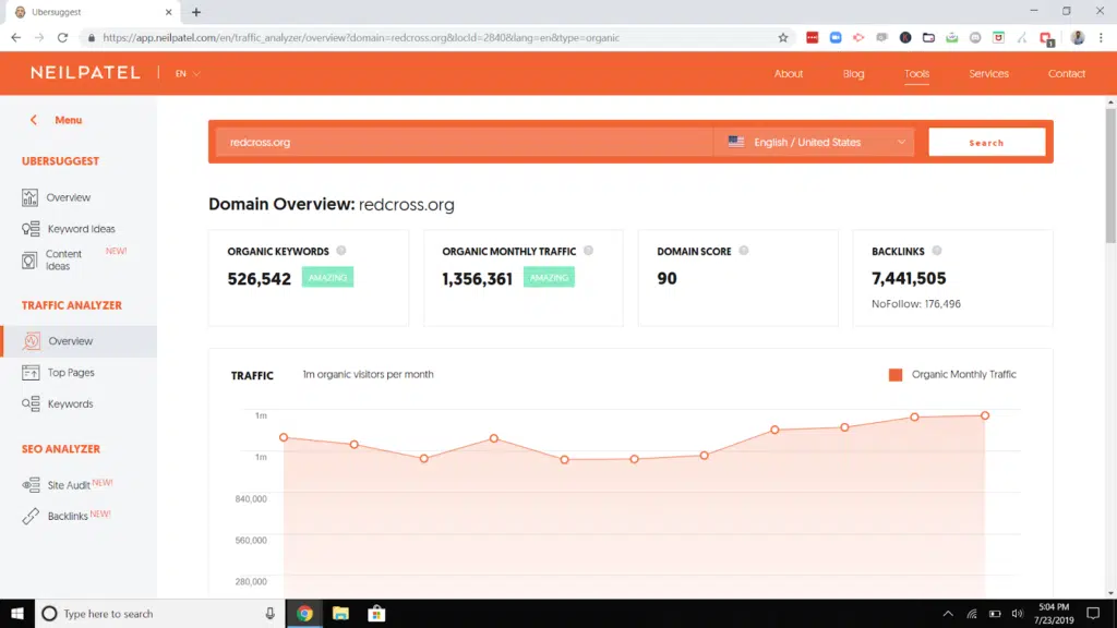 Red Cross as you can see below gets approximately 1.3 million visitors monthly: