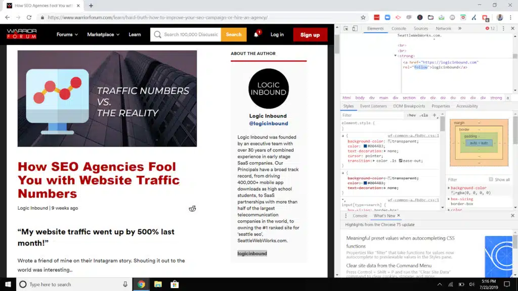 So you got a backlink!? That’s awesome! Keep getting one backlink everyday. This is a bit more advanced, but you can make sure its a follow link by checking the code. (I’ll show you below).
