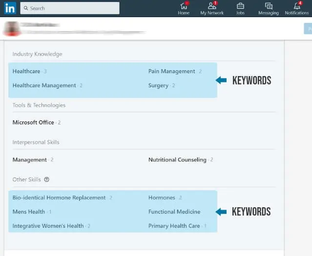 Other doctors it list keyword ideas on their Linkedin accounts here, note these down:
