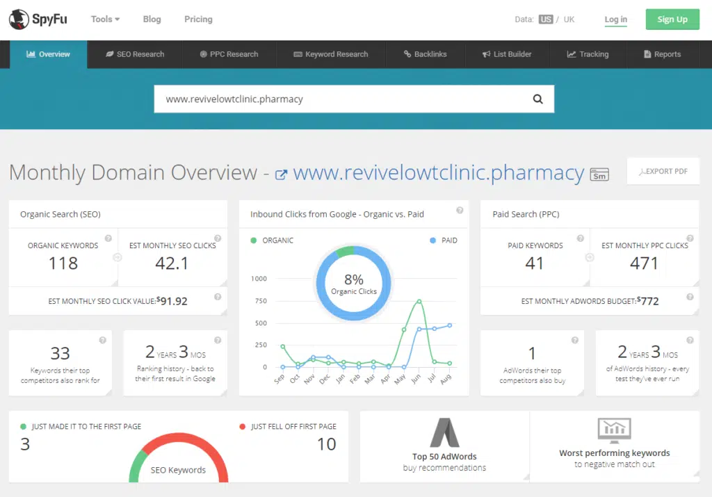 - Use Spyfu to estimate their traffic budgets and find other competitors