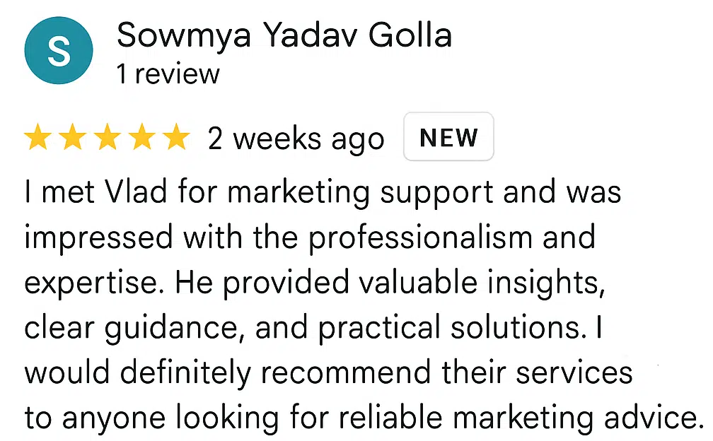 “I spoke with Vlad and had an excellent experience. He has great energy and was very helpful with marketing. The team is professional, responsive, and knowledgeable.”