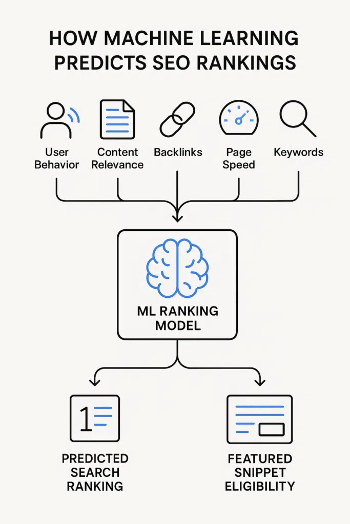 Machine learning SEO changes the game completely. Instead of guessing, it uses data from millions of searches to predict exactly how pages will rank. These AI ranking factors go beyond keywords, looking at user behavior, search intent, and content relevance.