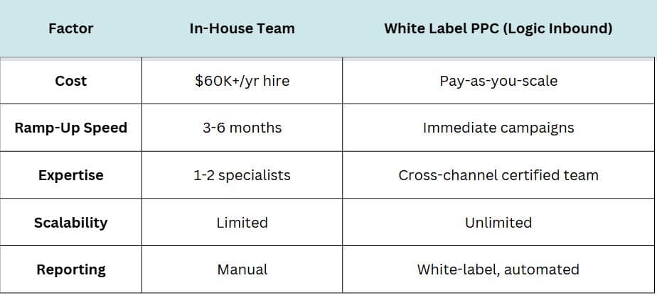 Partnering with a white label PPC agency like Logic Inbound gives you a faster, leaner way to scale. You get a certified team, proven processes, and branded reporting without the overhead.