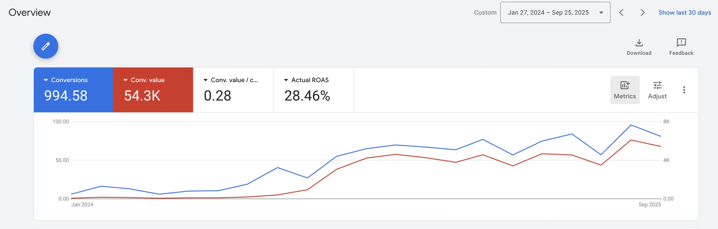 In our high-conversion PPC campaign, we helped a client maintain consistent results across 12 months by refining Google Ads strategy, not just relying on automation.